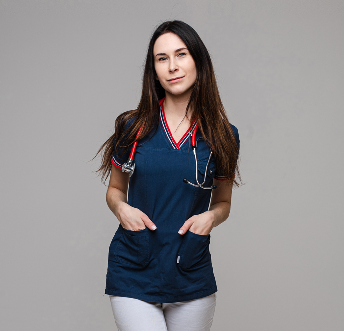 Es una tela stretch especial para el sector médico por ser repelente a los fluidos. Tiene un peso de 156 gr y 150 cm de ancho